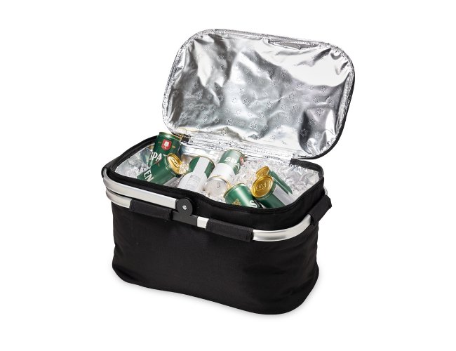 Bolsa térmica de poliéster com capacidade de 31 litros, revestimento térmico com costura soldada (não vaza). Contém armação de transporte removível em alumínio com pegador emborrachado.