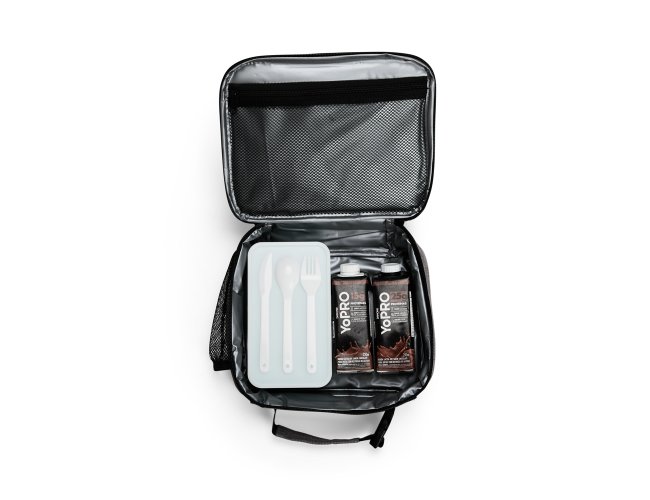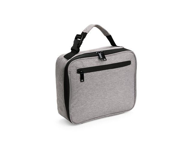 Bolsa térmica em poliéster impermeável com fechamento em zíper e capacidade de até 6 litros. Possui revestimento térmico interno em PEVA atóxico e compartimento em tela de nylon. Apresenta bolso frontal com zíper e bolso telado com elástico, além de alça de mão com engate rápido.