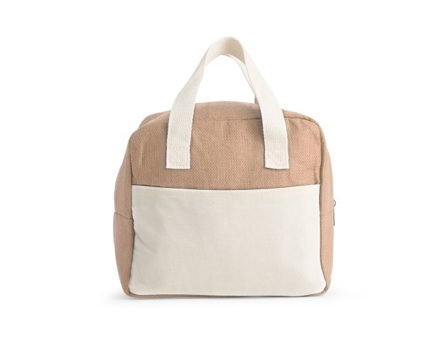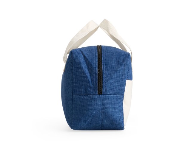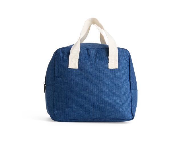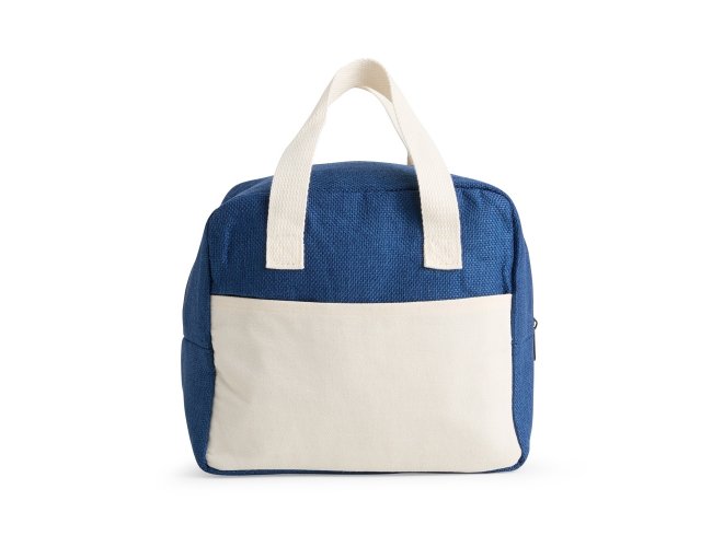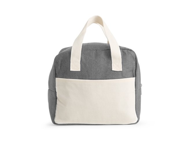 Bolsa térmica confeccionada em poliéster, com fechamento em zíper e capacidade máxima de 8 litros. Possui revestimento térmico em folha de alumínio, além de bolso frontal aberto e alças de mão em poliéster mesclado com algodão.