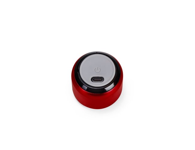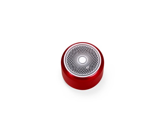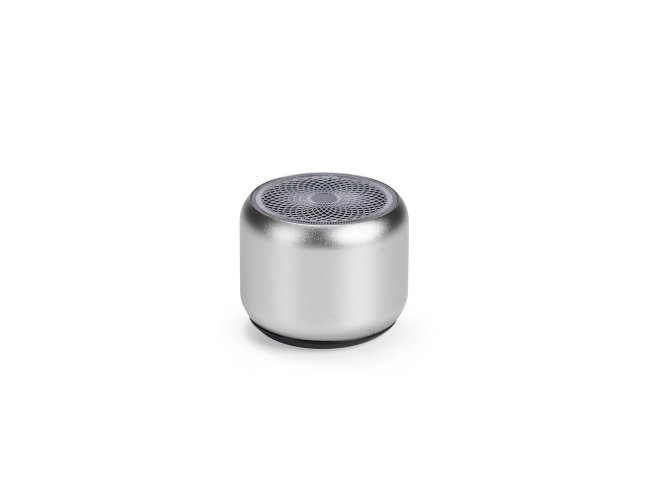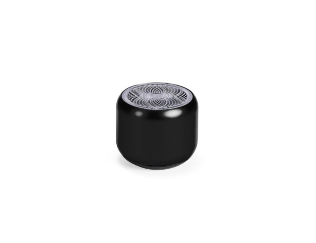 Caixa de som com estrutura em metal e plástico. Possui base emborrachada com botão liga/desliga, conexão Bluetooth 5.0, autonomia de reprodução estimada de até 2 horas e meia e entrada USB-C para carregamento. Acompanha cordão de nylon e cabo USB-C.