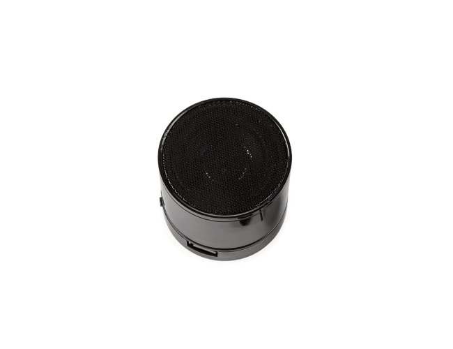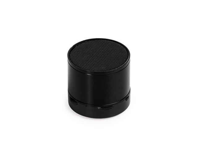 Caixa de som multimídia com Bluetooth e rádio FM. Feita em metal com detalhes plásticos, possui: botão Off/On; O botão de rotação tem algumas funções: >