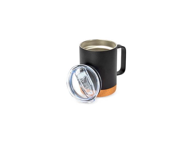 Caneca térmica em inox com pintura eletrostática, fundo em cortiça e capacidade para até 330ml. Apresenta estrutura de parede dupla e vedação a vácuo, que ajuda a conservar a temperatura das bebidas por mais tempo. Possui tampa plástica com trava de segurança no bocal.