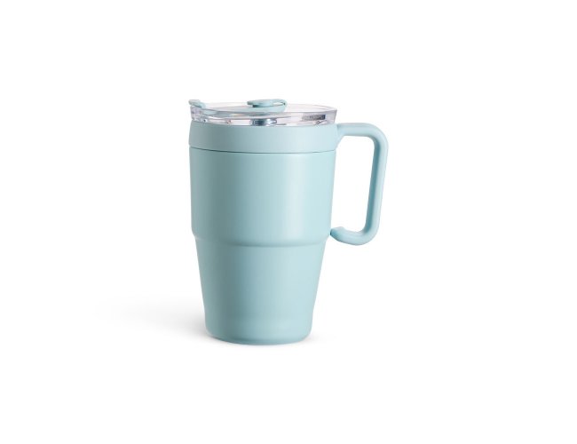 Caneca térmica em inox com pintura eletrostática e capacidade de até 600ml. Apresenta estrutura de parede dupla, base antiderrapante e tampa plástica com vedação a vácuo, protetor emborrachado para o bocal com acesso para canudo. Acompanha canudo de inox com ponta removível em plástico.