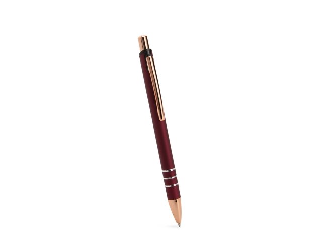 Caneta metálica com acionamento por clique e carga esferográfica azul de 1,0mm, oferecendo uma pegada leve para uma escrita mais precisa.
