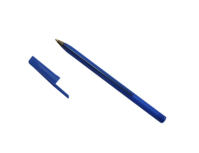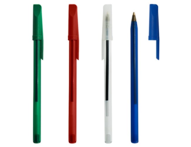 Caneta plástica com tampa. Carga esferográfica azul 1.0 mm.