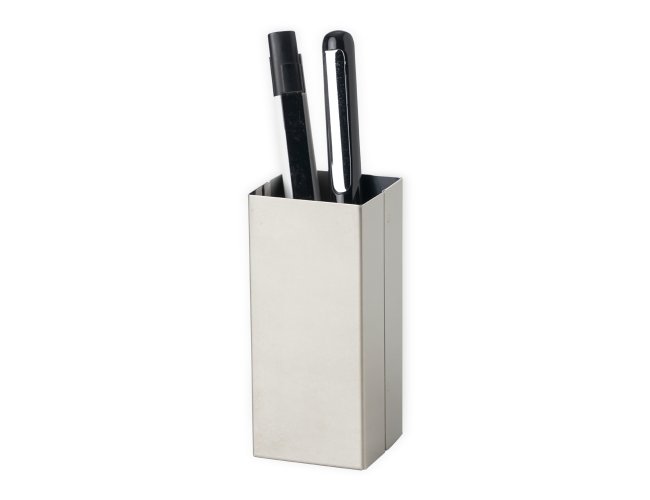 Porta canetas metálico espelhado.