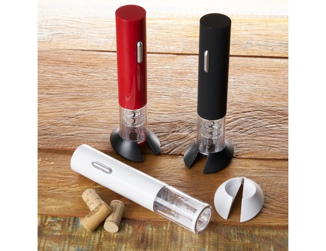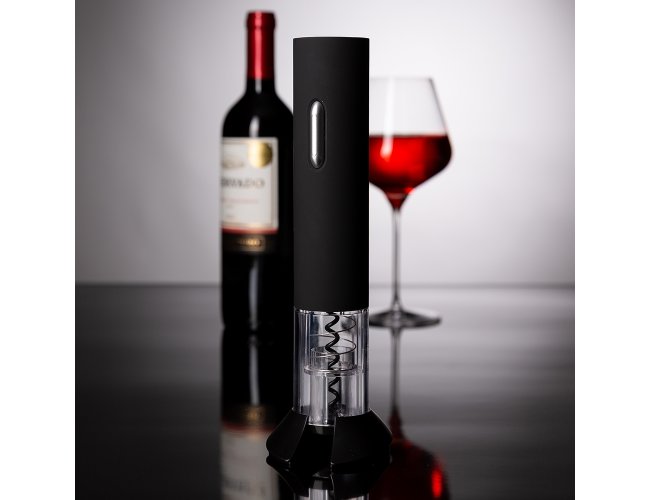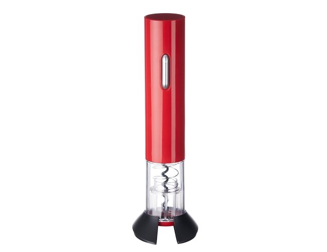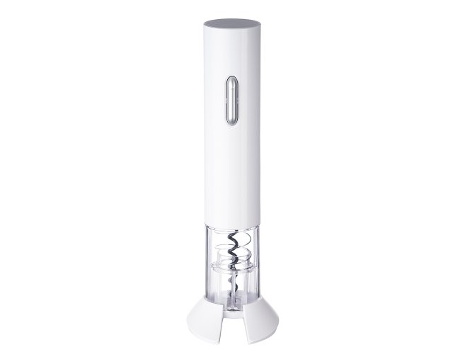 Saca-rolhas elétrico com suporte cortador de lacre, contém compartimento com tampa para inclusão de 4 pilhas AA (não acompanha). O suporte cortador de lacre também pode ser utilizado como base de sustentação.
