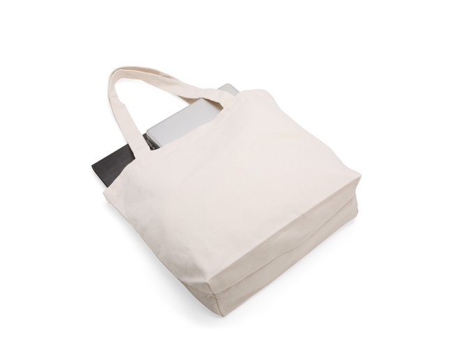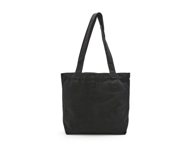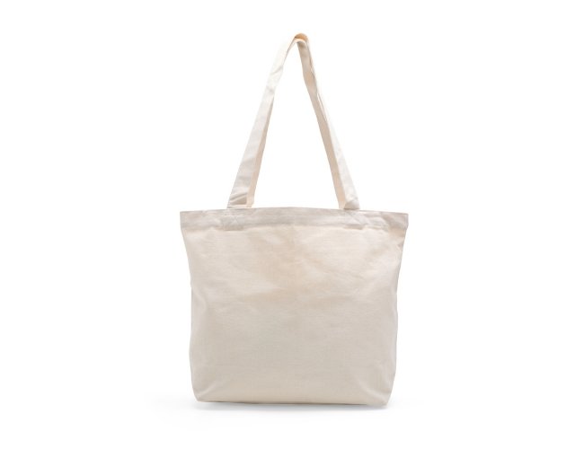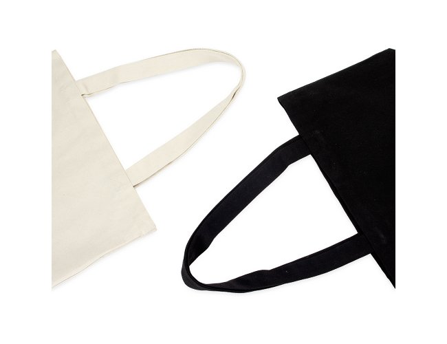 Sacola em lona resistente a respingos dágua. Possui duas alças fixadas por costura interna.
