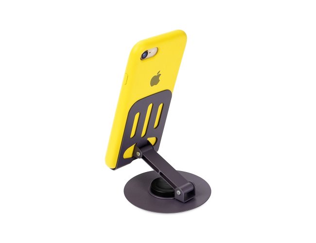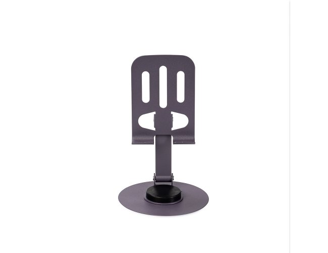 Suporte de celular retrátil em metal ajustável em diferentes ângulos e rotação de 360 graus.